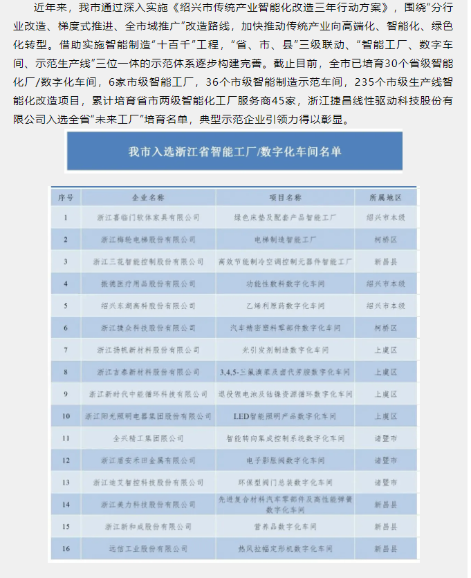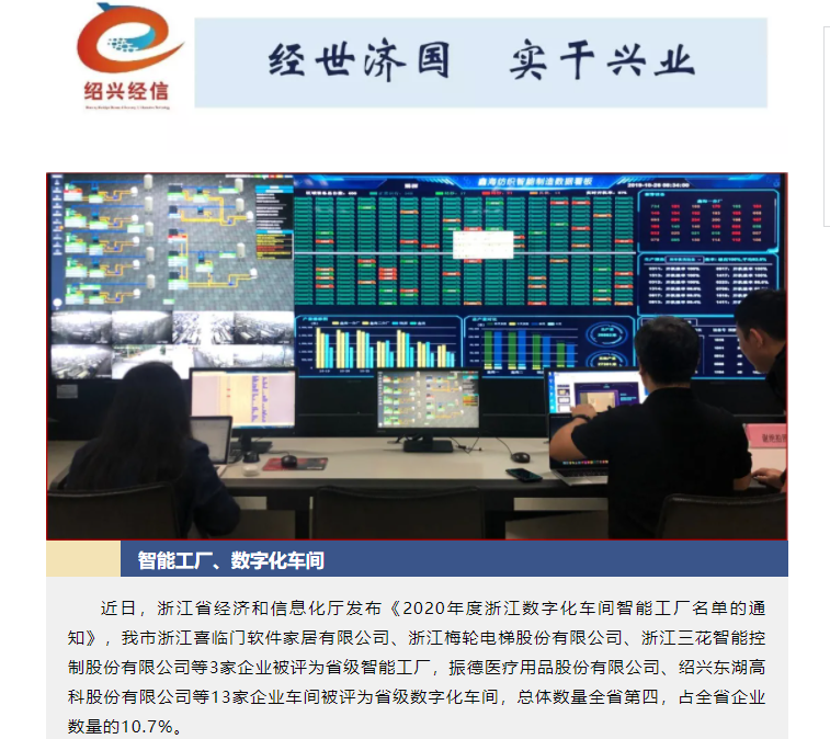 近日,浙江省經濟和信息化廳公布關于2020年浙江省數字化車間/智能工廠的名單,浙江揚帆新材料股份有限公司(300637)光引發劑制造數字化車間榮獲2020年浙江省數字化車間稱號。
