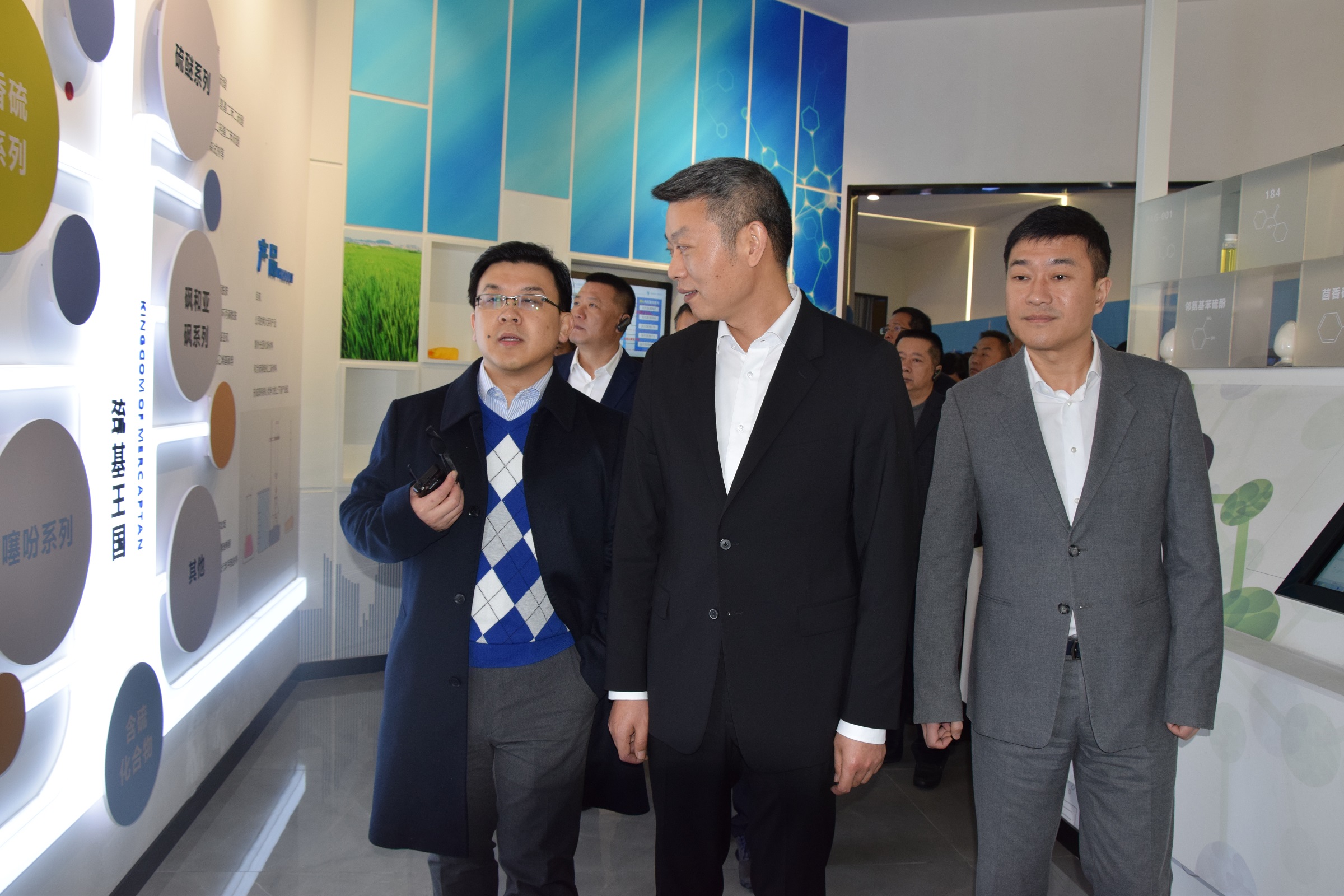 首先,張書記一行參觀了企業發展(產品)展示廳、黨建展廳。樊彬董事長向各位領導就公司發展歷程、企業文化、產品工藝流程、設備裝置、市場前景等方面進行了介紹,并就公司目前的運營情況、主要產品、發展目標、競爭優勢、人才戰略等方面做了重點匯報。