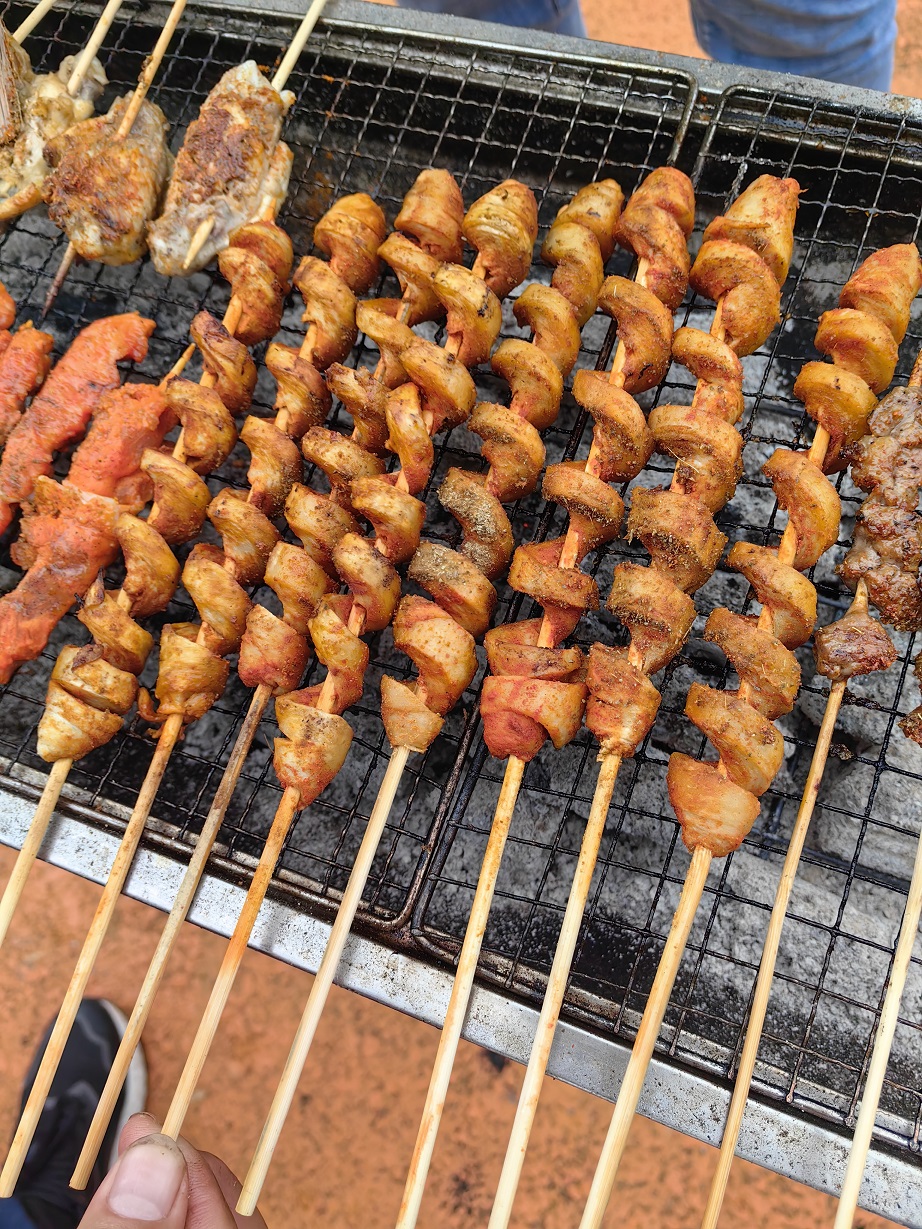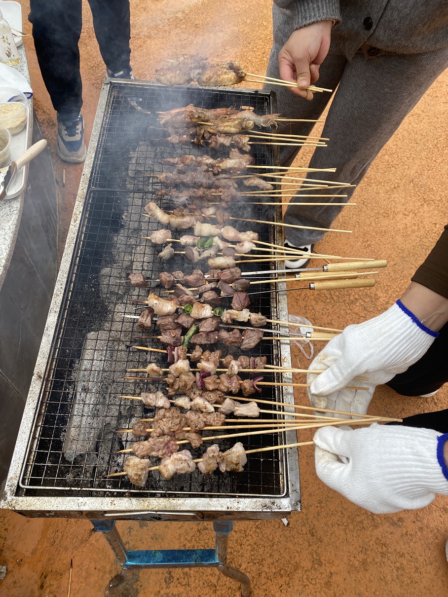 短暫休息后,開始下午的燒烤活動,大家自已動手、分工合作:起火燒炭、擺桌串串、燒烤、分享食物……